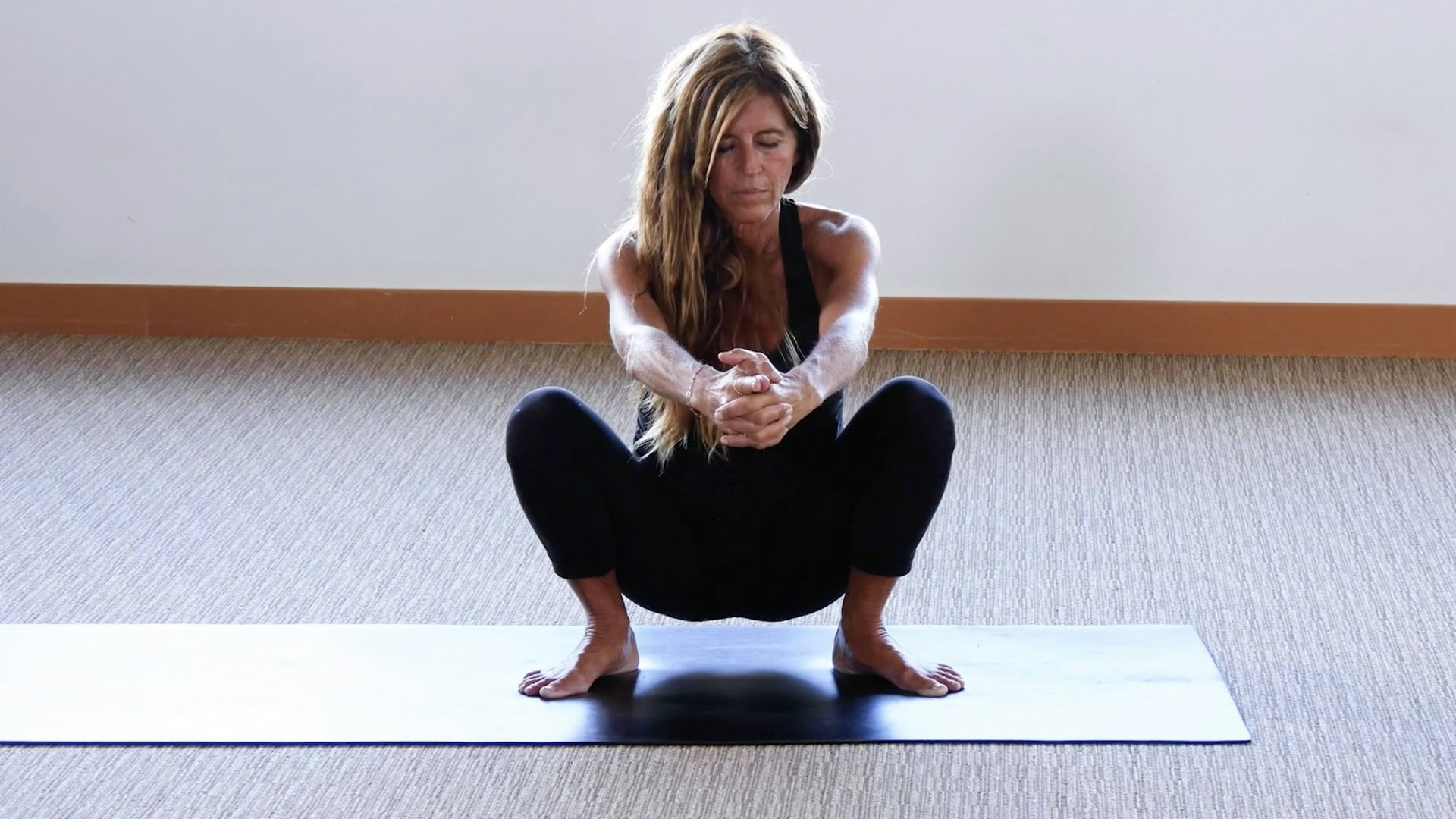 You’ll wind down with a restful savasana, then conclude seated with hands to heart.