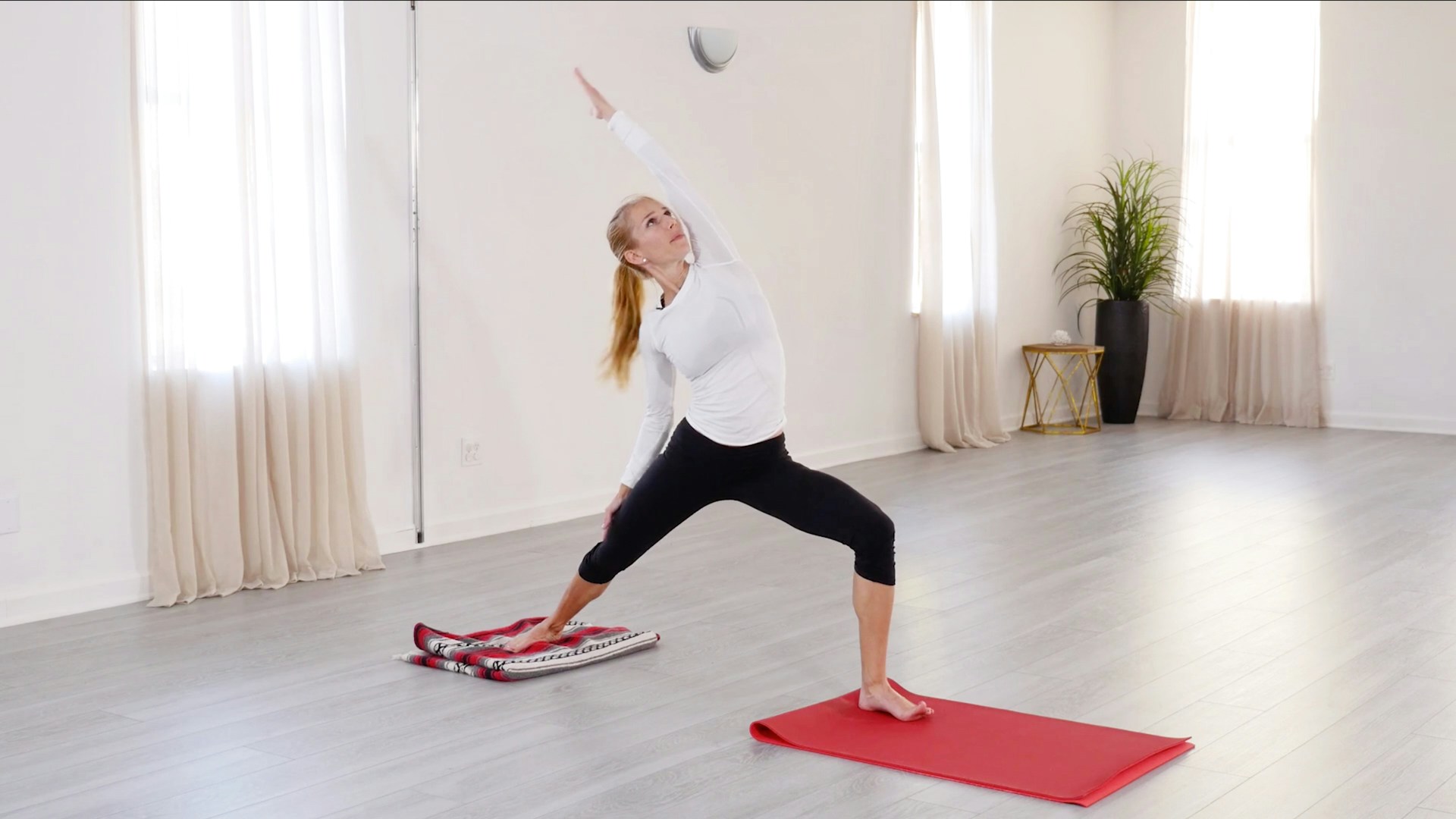 Activate and strengthen your abdominals, hip flexors, hamstrings, and glutes with this short but challenging vinyasa class. With a blanket under your feet, you’ll quickly feel your muscles fire as you slide the blanket forward and back during flows, and work to keep it steady during longer holds. Class winds down with a deep release in eka pada rajakapotasana (pigeon), a malasana (squat) variation, and baddha konasana (bound angle pose). You’ll want to practice this one on a slick surface!