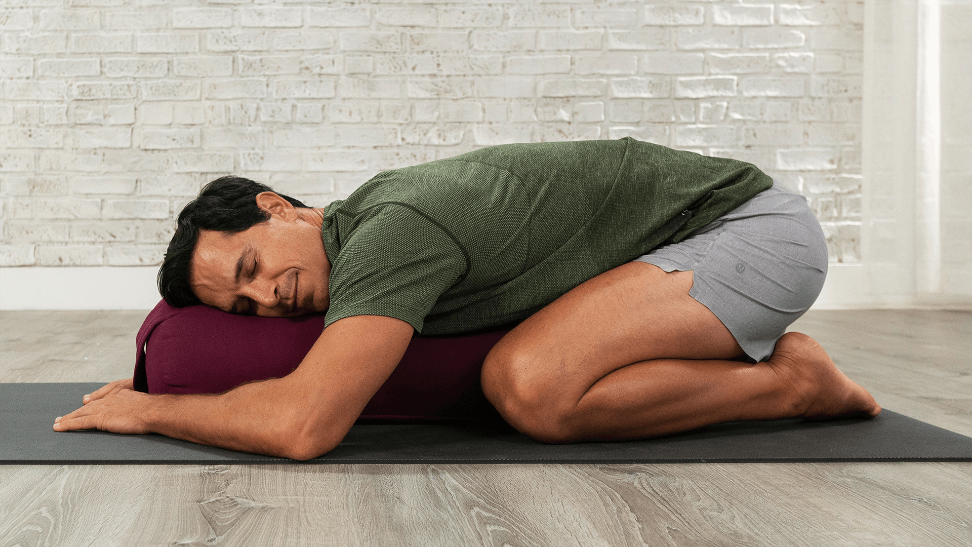 Find ease and peace in this four posture yin practice to help end the day in a soft way. Use sustained holds and gentle breathing to enter into a calm, sleep-ready state. Props: bolster or pillow