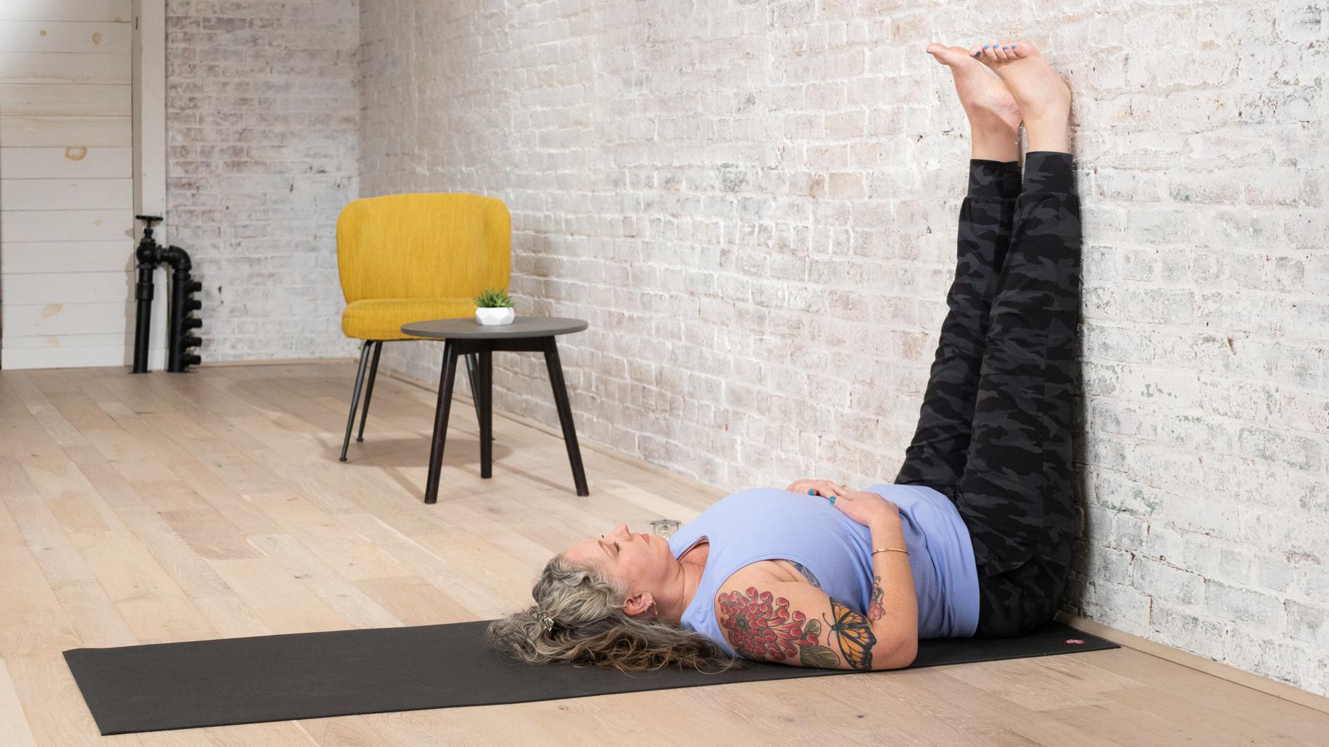 Use the support of a wall and floor to connect to the present moment and invite stillness after a rough time. Come home to your body with variations of legs up the wall.