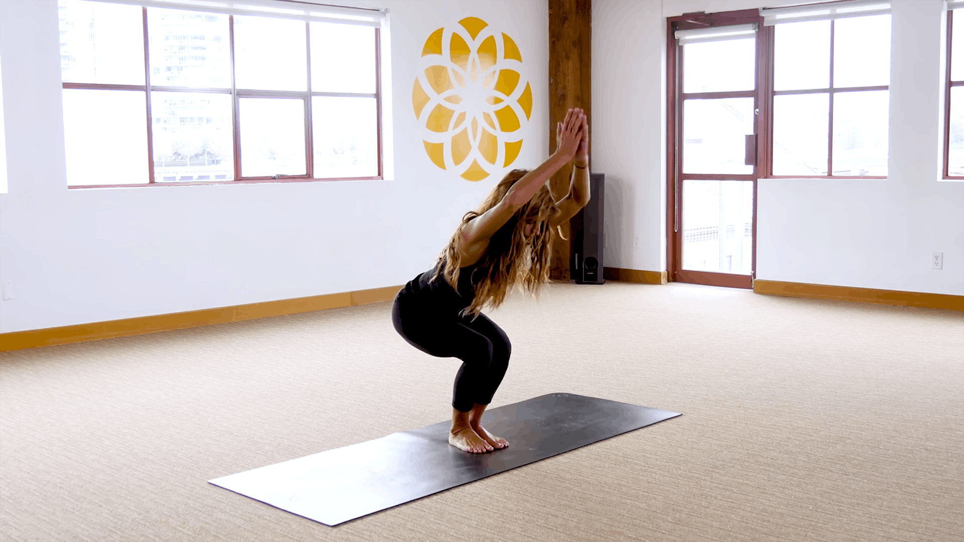 In kundalini yoga, the aura or “eighth chakra” is said to be a container for lifeforce. This energizing practice—which includes down dog split push-ups, lots of standing, twisting, whole-body lateral stretches, goddess pose squats, and more—is designed to help you strengthen yours.