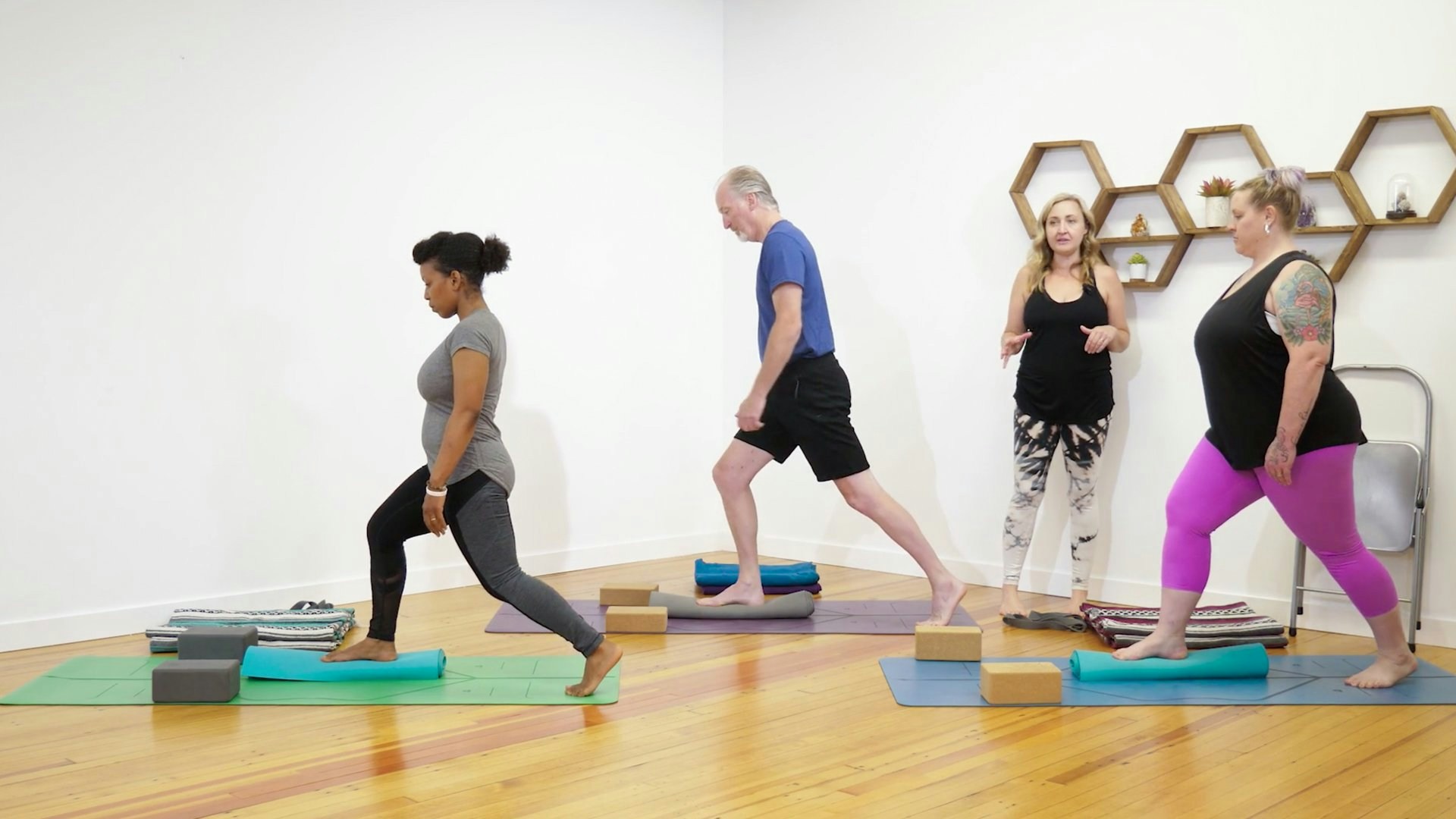 Work on stabilizing your pelvis while you balance in this out-of-the-box class. You’ll start with a posture check-in where you’ll refine your pelvic and upper-body alignment. After that comes a lateral hip stability practice from mountain pose, then a walking and lunging series where you’ll use blocks and a rolled-up yoga mat (your “balance beam”) to create variable surfaces. Last but not least, enjoy hopping around on one leg…you may want to have a wall or a chair available!