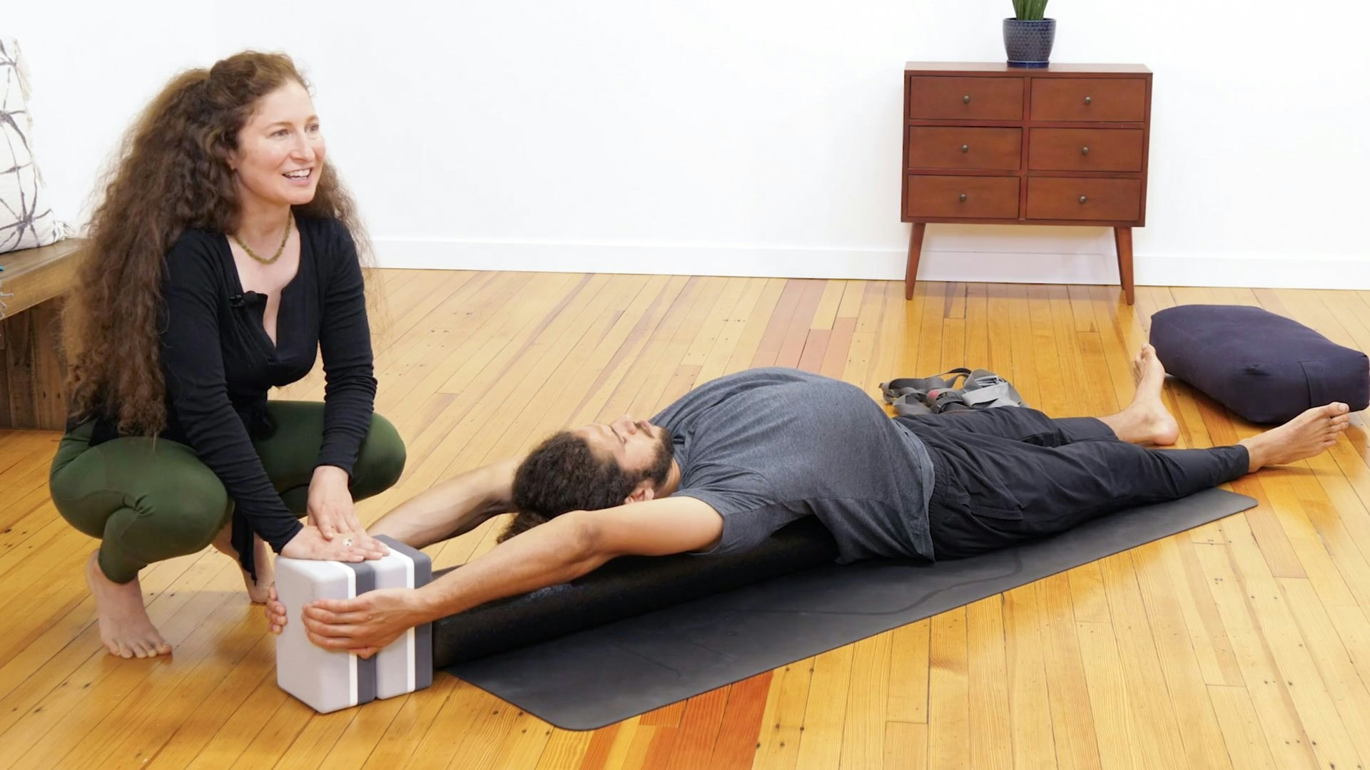 Create space throughout your whole body with this spine-focused practice. You’ll begin with a dandasana (staff pose) variation using a strap. After that, you’ll do a supine spine-tractioning stretch, a challenging resistance-oriented bridge variation, a feel-good foam-roller chest-opener, prone backbends, and more.