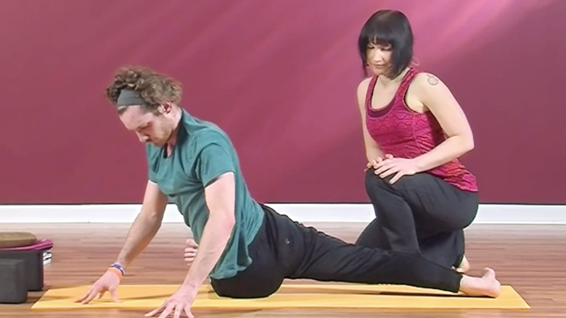 Join Kat for a fun vinyasa flow for twisting and hip opening. Twisted lunges and downward facing dogs are linked to Virabhadrasana 1 (warrior 1), Parsvakonasana (side angle pose) and Vasisthasana (side plank) variation through a core activating flow. Complete the practice by working into your hips in hanumanasana (full splits) and malasana (squat). Progressive and unique movements into challenging poses will inspire you to step outside of your comfort zone in this advanced sequence.