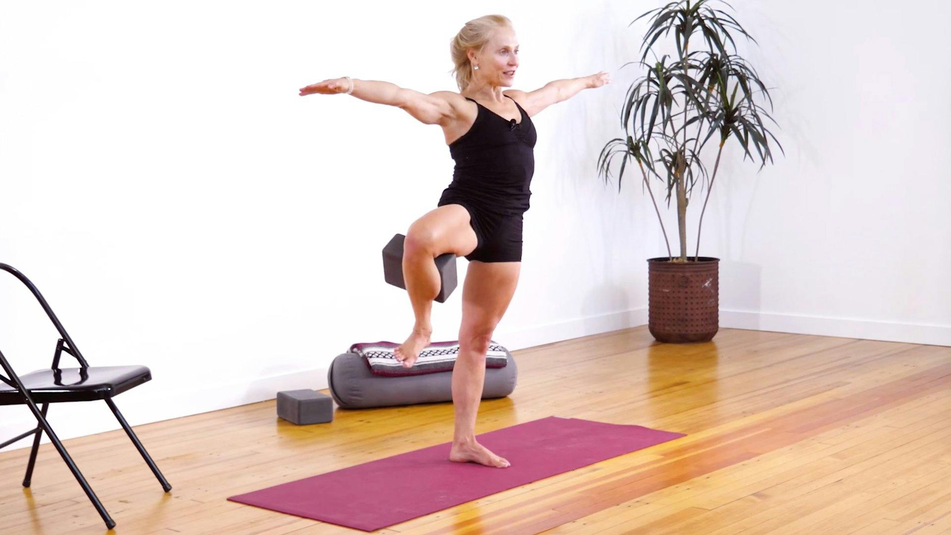 Strengthen your hips, glutes, and core in this balance-challenge class! Begin with a thorough warm-up for your hips and legs before moving into a step-by-step sequence where you’ll practice hopping from warrior ll to utthita hasta padangusthasana (extended hand to big toe pose) and vrksasana (tree pose). Experiment with vasisthasana (side plank) variations to further test your balance, including a challenging chair version of the pose. Relax at the end with reclined twists and a chair-supported savasana.