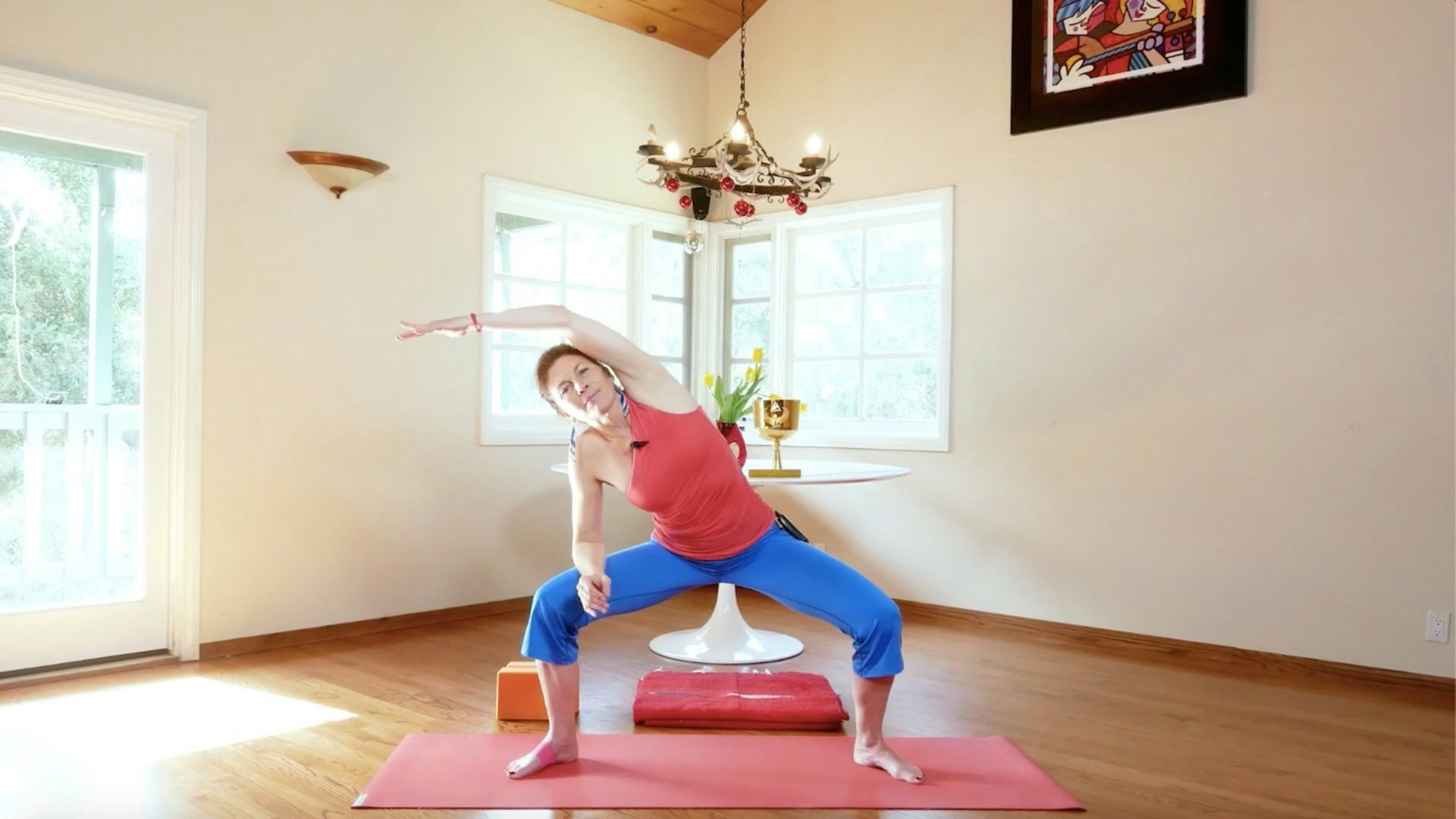 In this dynamic practice you'll explore wave and pulse-like spinal movements from seated, hands and knees, down dog, standing forward fold, chair pose, wide-legged forward fold, lunges, and more. The practice begins with the mantra ahem prema (I am divine love). Feel that wave of love travel through you as you flow.