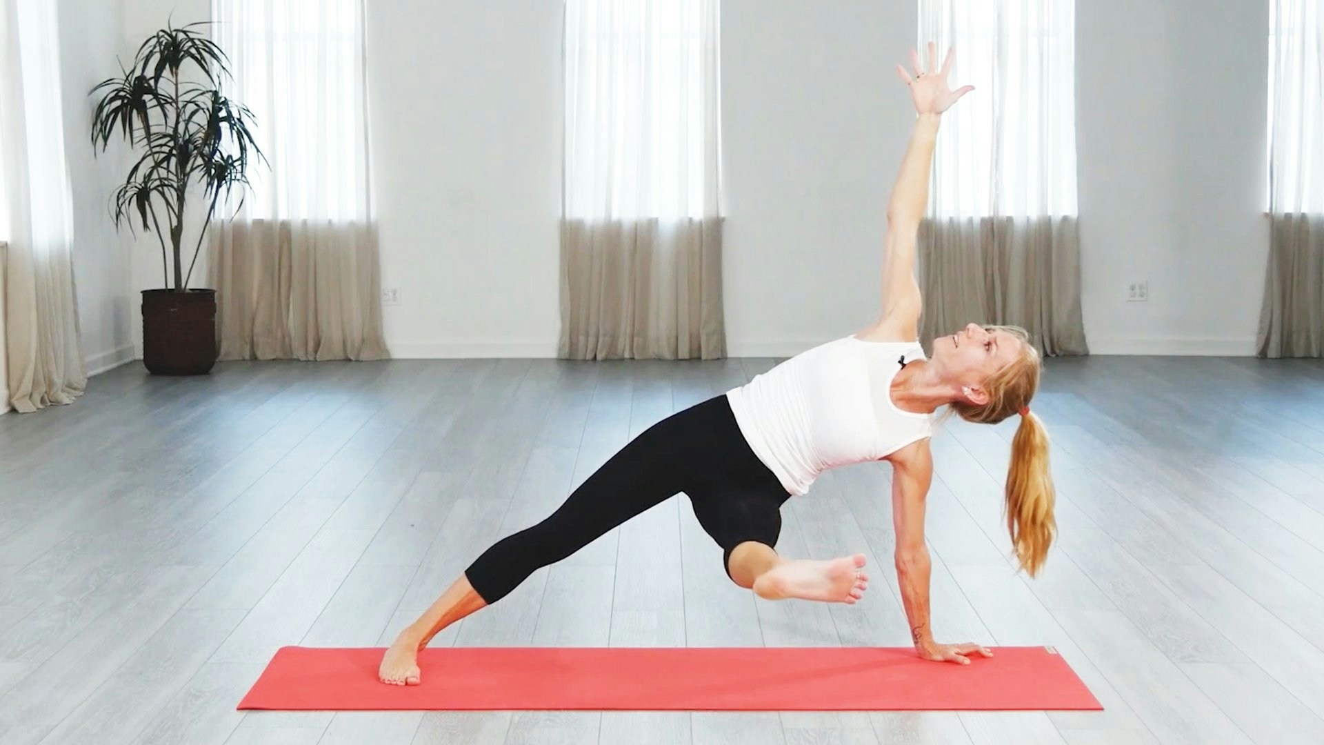 This strengthening and heat-building flow is perfect if you're short on time but have plenty of energy to devote to your practice. You’ll start with down dog core strengtheners and an option to arm balance. Open your front body with low lunges and work your way to kapotasana (king pigeon pose). Keep the fire burning with handstand hops and the option to linger upsidedown. You’ll heat up your core and glutes with plank variations, open your body with dhanurasana (bow pose), and conclude with the option to take savasana on your own.