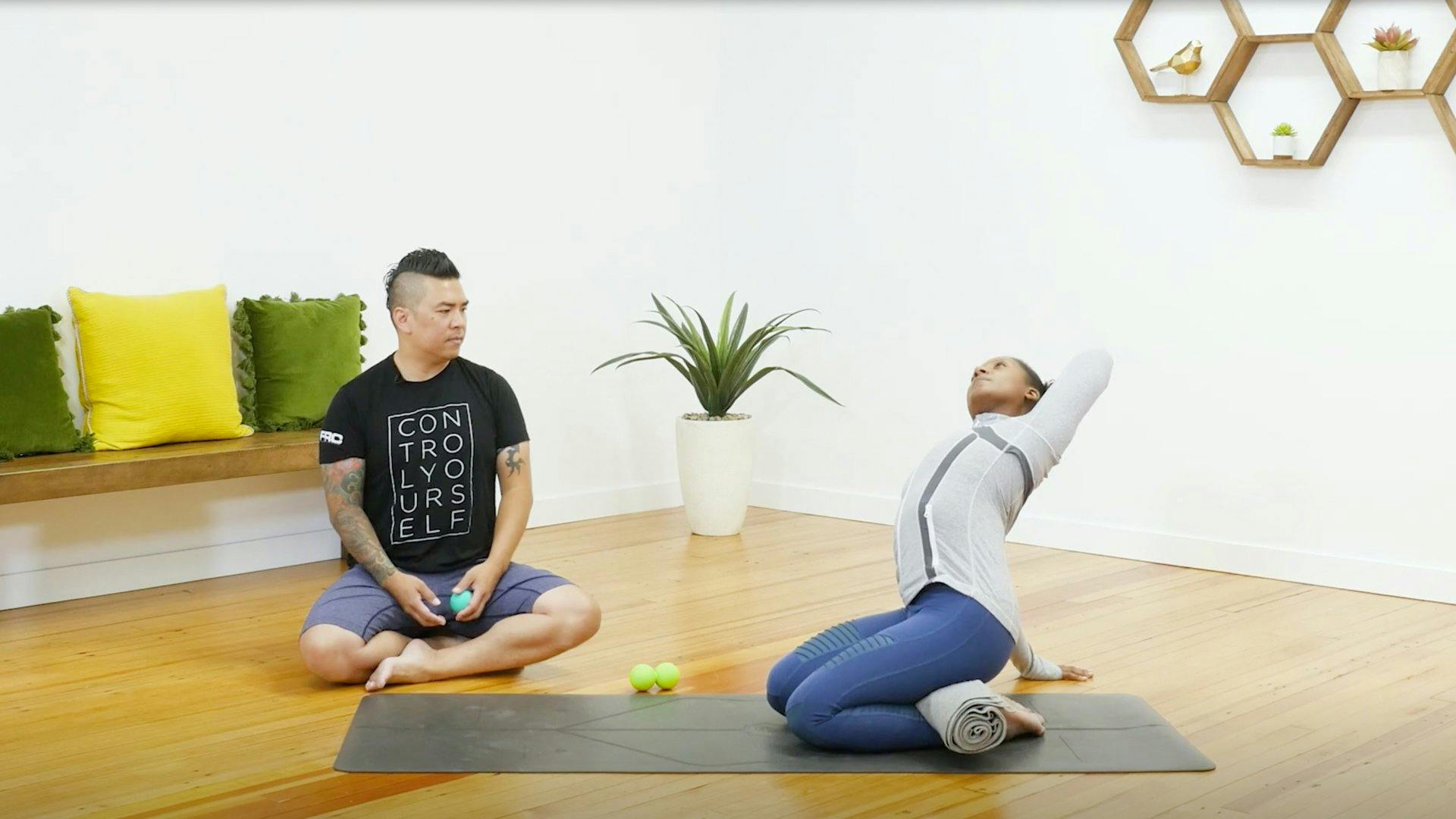 Props: blocks, blanket, therapy balls or tennis balls