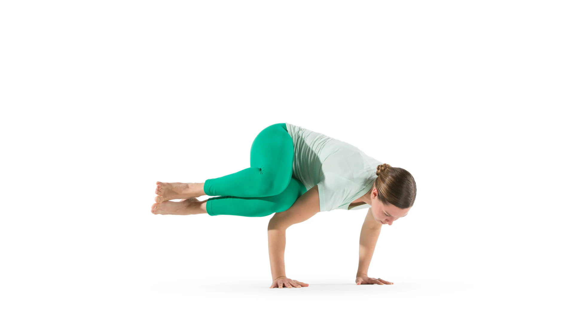 Comienza a desplazar el peso de tu cuerpo hacia delante, abriendo el pecho mientras doblas los codos. Despega el pie derecho del suelo con los dedos separados. A continuación, fíjate si puedes levantar el pie izquierdo hasta juntarlo con el derecho, presionando los lados internos uno contra el otro. Mantén la apertura del pecho y las clavículas para evitar que los hombros se encorven.