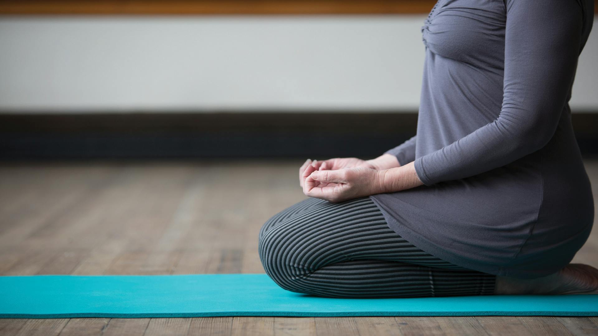 Para comenzar, siéntate en una silla o acuéstate. Cruza las manos y bájalas por la parte externa de la pierna contraria, tan abajo como te sea posible. Luego sube por la parte interna, repite unas tres o cuatro veces. Haz que tus exhalaciones duren más tiempo que las inhalaciones, pero no te preocupes por sincronizar la respiración con el movimiento. Invierte el sentido (es decir, recorre la parte interna de las piernas al bajar y luego la parte externa al subir) y repite tres o cuatro veces. Para una dosis extra, invierte la posición de las muñecas y repite los movimientos. Haz una pausa y fíjate si te sientes menos “atrapado en tu cabeza” y un poco más arraigado y estable en tu cuerpo.