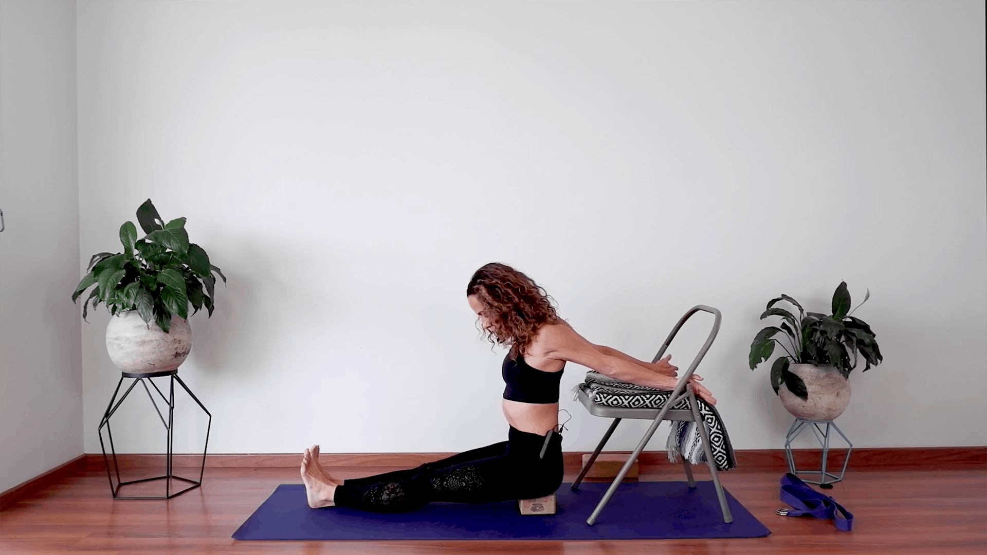 Esta práctica requiere los siguientes props: Una silla, una cobija, un block de madera o fomi, un cinturón de yoga. Práctica suave donde trabajarás con tu esqueleto y articulaciones. Mejora tu práctica y conoce estas posturas que se sostienen. Son llamadas aperturas de hombros. Estas se concentran en extender hombros y abrir pecho para mejorar la movilidad que tiene que ver con arcos y extensiones profundas. En esta práctica se explicará de forma detenida como utilizar material externo de apoyo para ayudarte a realizar las posturas de yoga.