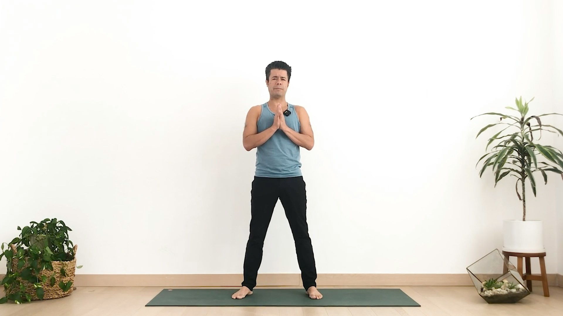 Meditación de Mudra Vinyasa en tadasana, Namaskar Monkey y enfoque hacia las Asanas de core. La intención de la sesión se fija con el mantra: “Visualizo a donde voy, hago realidad lo que pienso y sueño. No lo intento, lo hago”