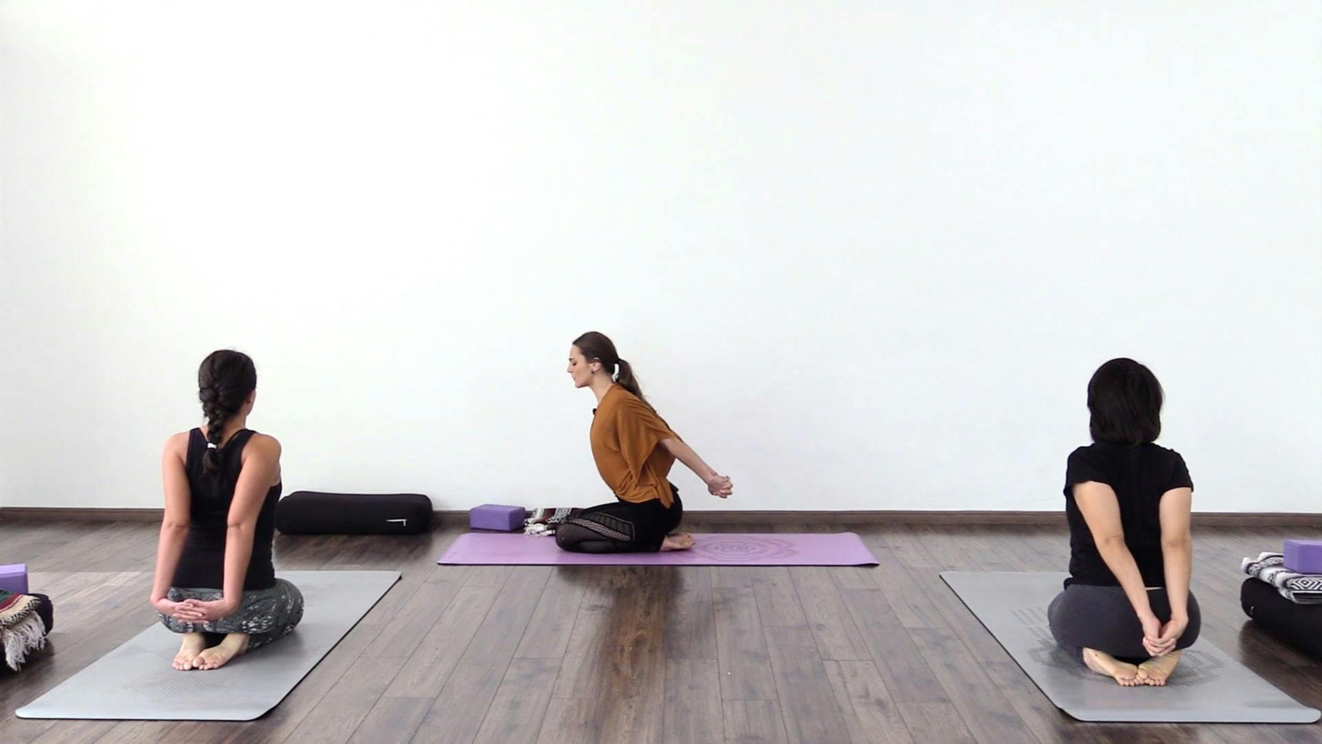 Práctica para abrir los meridianos y energizar el cuerpo. Para esta práctica se necesita un bloque, una cobija y un bolster.