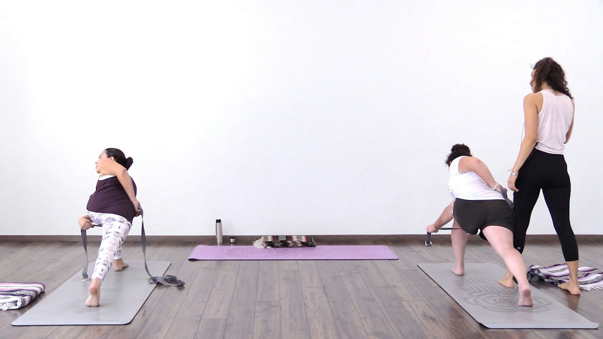 Práctica de torsiones con posturas de equilibrio en donde el lazo de Ganesh te ayuda a tomar posturas y deshacer los nudos de tu mente y de tu corazón.