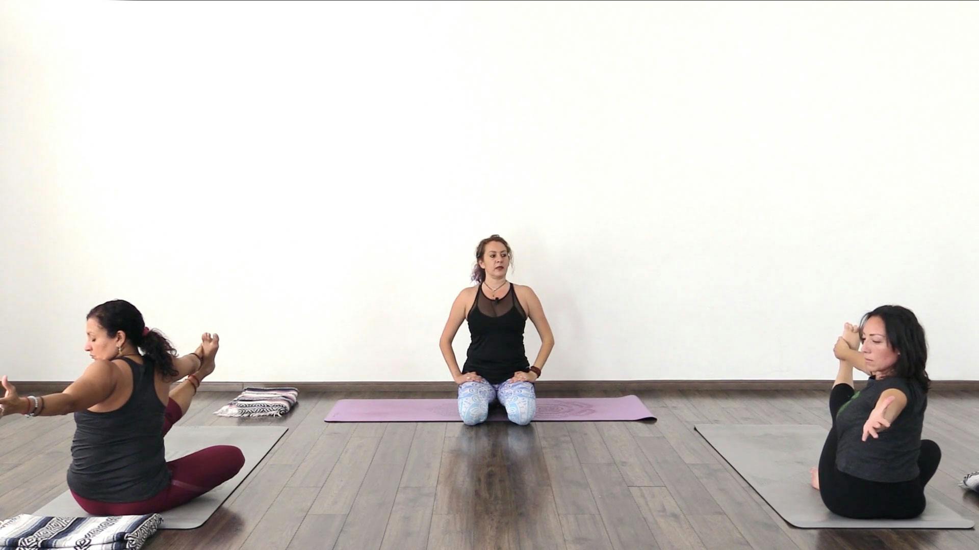 Clase de yoga moderada para distinguir las sensaciones corporales y mentales entre las posturas simétricas y asimétricas.