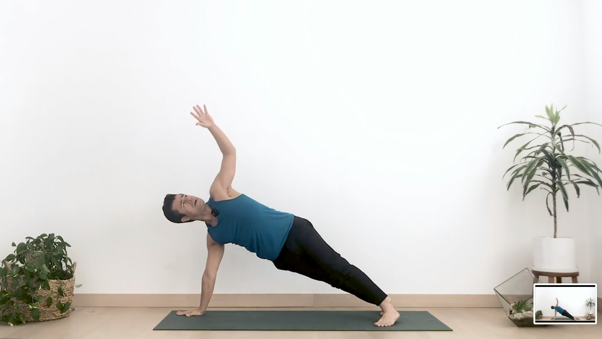 Meditación de Mudra Vinyasa en Sukhasana, Namaskar Libera y enfoque hacia las Asanas de equilibrio en brazo. La intención de la sesión se fija con el mantra: “Barro los obstáculos. Suelto las dudas. Aflojo los principios. Sano el dolor. Soy libre”