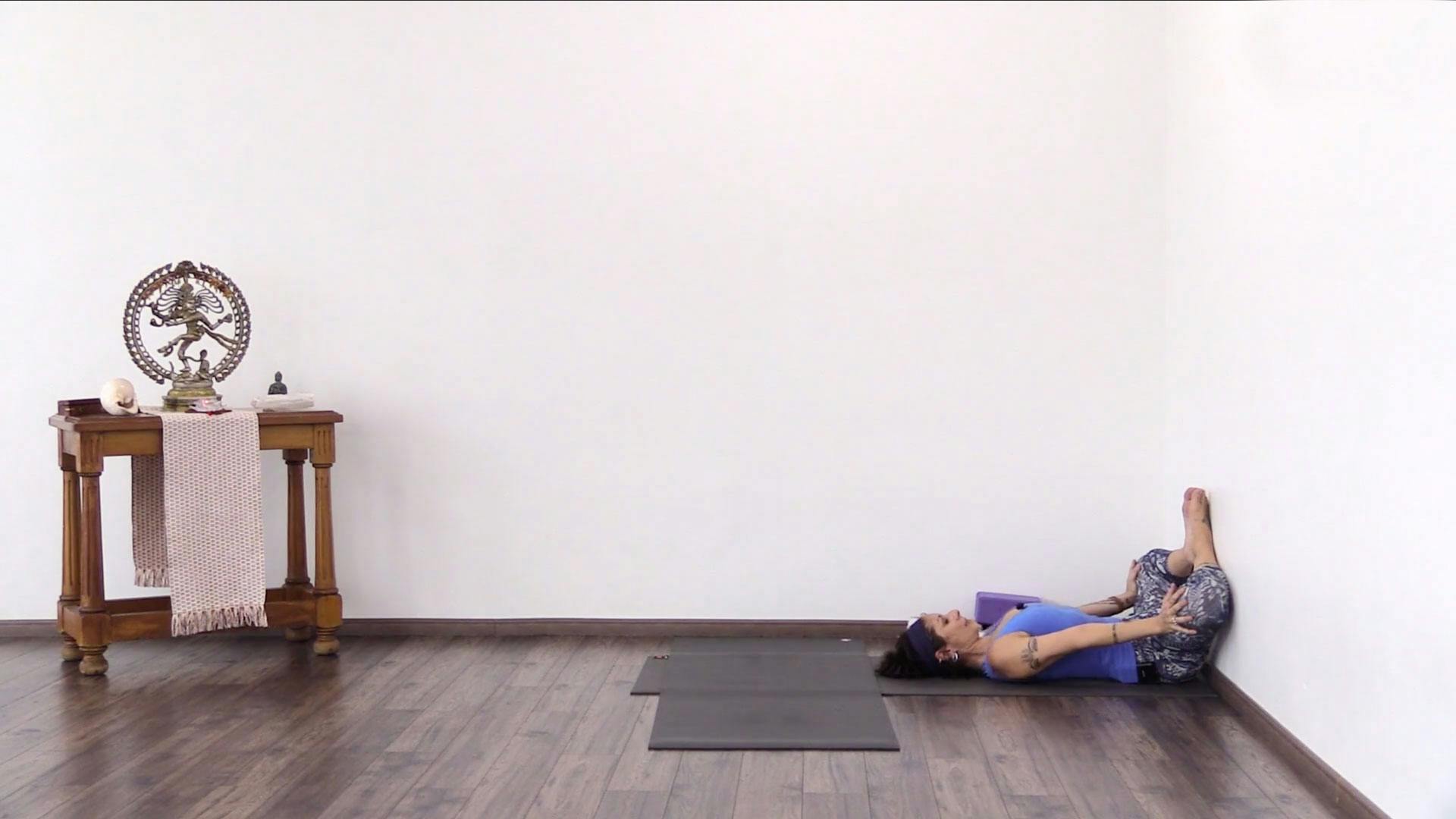 Práctica en la pared con extensiones para abrir el corazón energético.